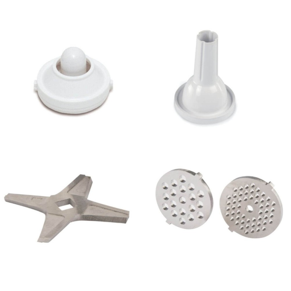 - Paslanmaz Çelik Diskler: İnce ve kalın kıyma çekimi için iki farklı boyutta dayanıklı çelik disk.