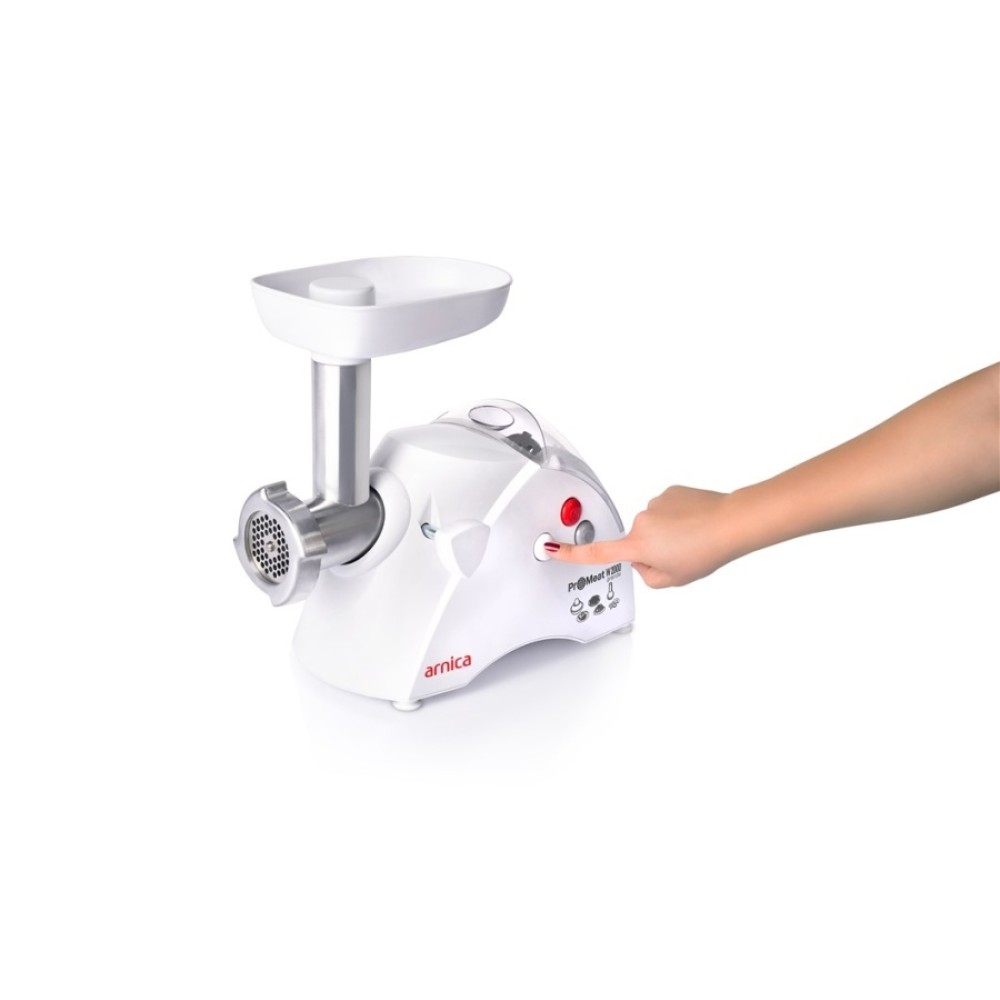 Arnica ProMeat W2000 Grande (GH21200), 700W ideal motor gücü ve yüksek performanslı paslanmaz çelik bıçaklarıyla eti saniyeler içinde işler. Kompakt tasarımı ve beyaz şıklığıyla mutfağınızda yer kaplamadan profesyonel çözümler sunar.